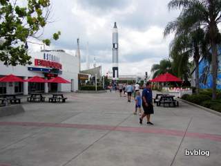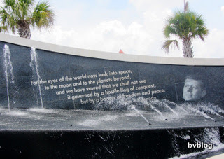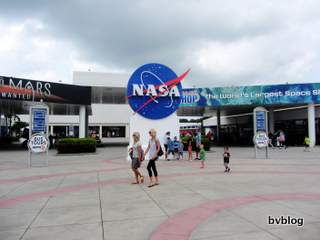 Quando me perguntam do que é gostei mais na minha viagem à Flórida, não preciso de pensar nem um segundo para responder: a visita ao Kennedy Space Center, no Cape Canaveral. Estava um dia de treta, chuvoso e fresco, o que até foi positivo pois assim não tivemos pena de perder um potencial dia de banhos até porque, mesmo ali ao lado, fica uma das melhores praias da Florida, a Cocoa Beach. Mas sabem que mais? Esqueçam a praia, mesmo que esteja um dia lindo de morrer. O Kennedy Space Centre tem tanto que ver e é tudo tão interessante que não merece de forma alguma ser trocado por uns banhos de mar. Estar aqui, no mesmo lugar onde tantos astronautas se prepararam e ainda se preparam para expedições ao espaço, e saber como são seleccionados, que formação recebem, o que descobrem, como são as rotinas dentro de uma nave espacial.... Foi tudo tão emocionante que, quando a visita acabou, mesmo estando apenas no quarto dia de férias, disse à família "Se fossemos hoje embora, já ia satisfeita só por já ter visitado este lugar". Mas quase ficávamos à porta...